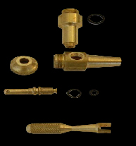 Canilla: de bronce torneado, desarmable en 5 piezas.