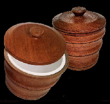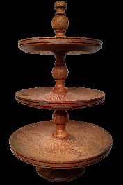 Totalmente de algarrobo torneado, de 35cm de altura, con 3 pisos de 30cm, 25cm y 20cm, de diametro.
